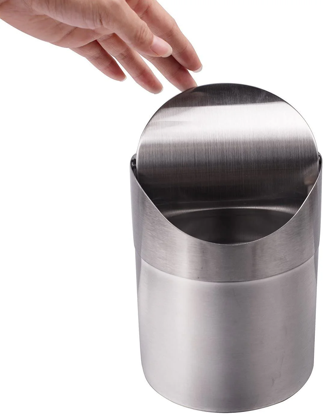Mini Table Trash Can Stainless Steel Wave Cover Counter Top Garbage Bin